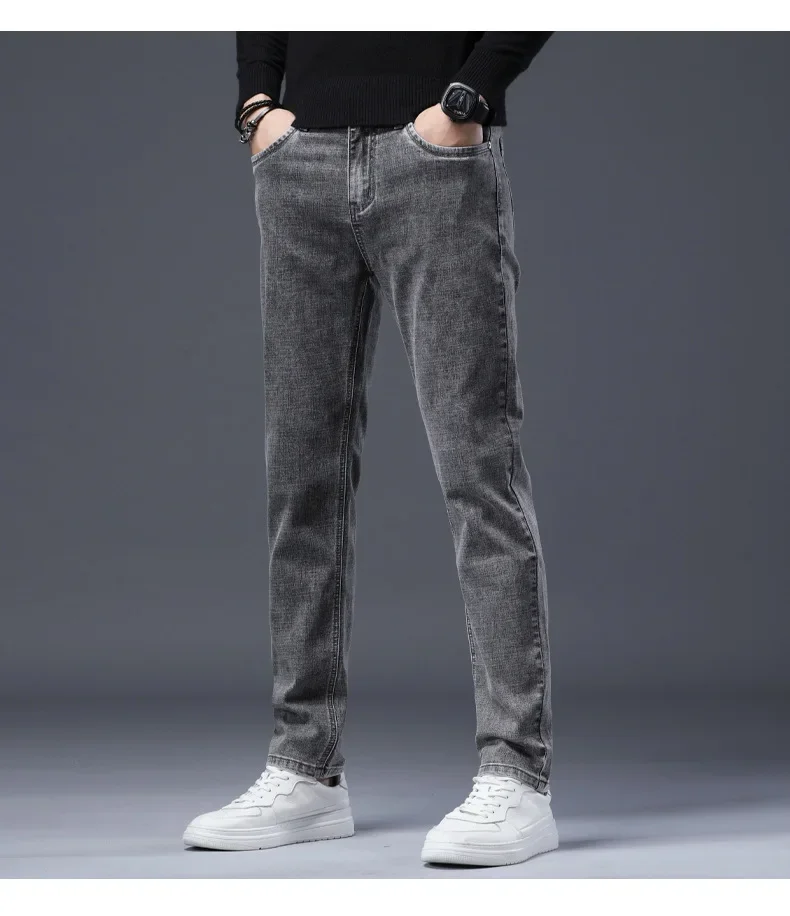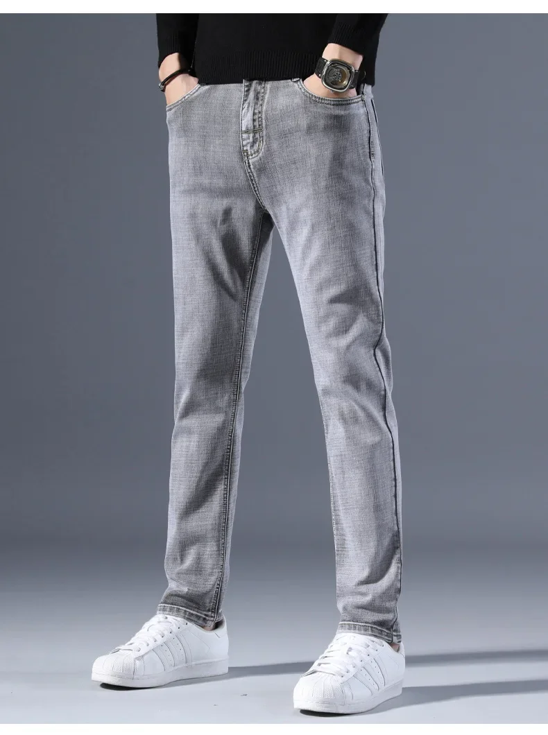 2021 autumn and winter new slim-fitting men's clothing pencil pants smoky gray jeans men's long pants men's jeans