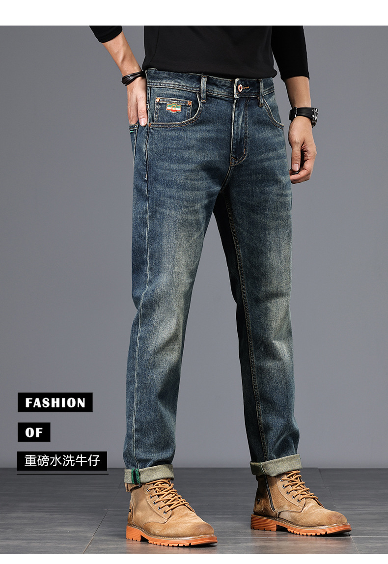 Autumn and Winter new American retro slim-fitting small straight jeans men's jeans one piece dropshipping