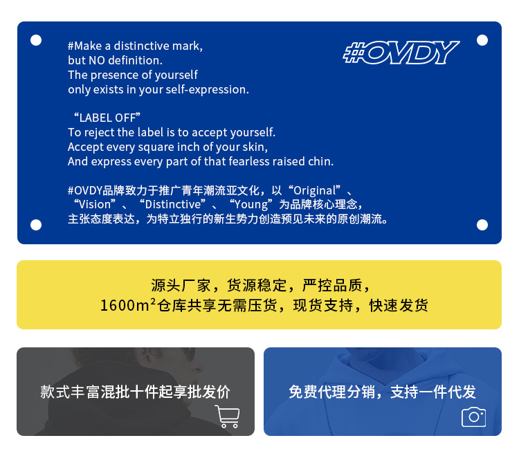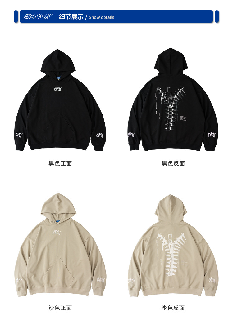 # OVDY autumn and winter European and American fashion brand men's and women's same style bone zipper printing bf style loose sweater men's autumn New