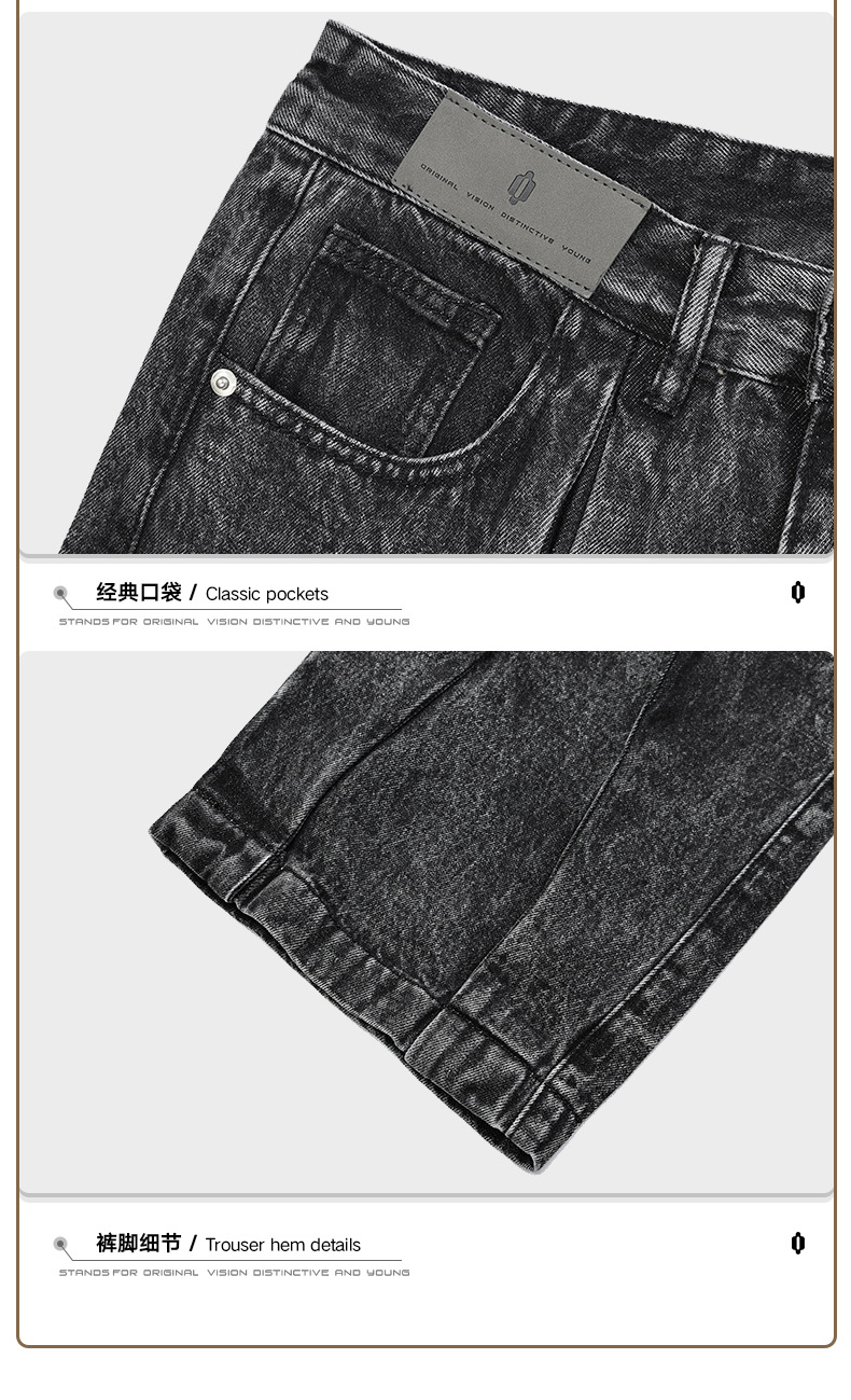 # OVDY autumn and winter new jeans folding pleated design snowflake washing craft street fashion loose trousers