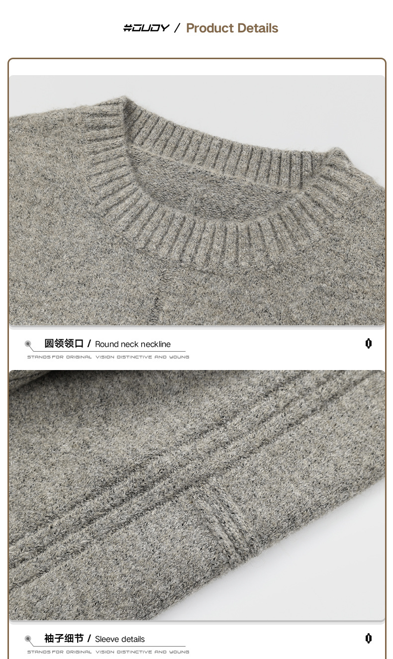 # OVDY autumn and winter New lazy wind round neck sweater curling design soft glutinous simple style solid color sweater fashion