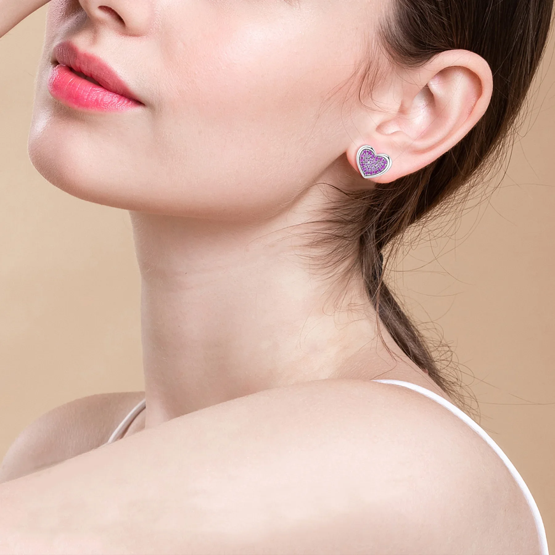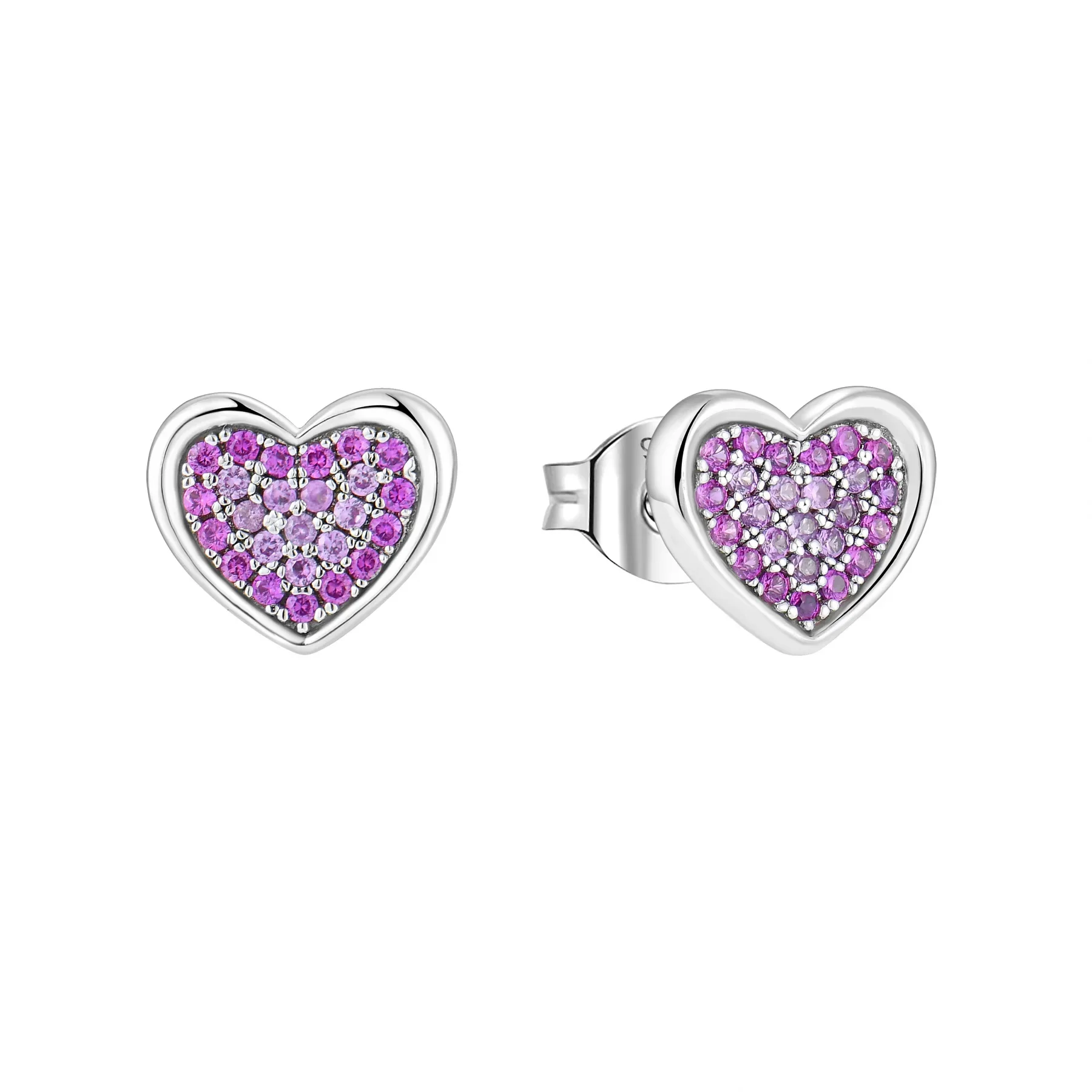 S925 silver pink purple heart-shaped zircon earrings earrings light luxury all-match High sense girls earrings gift supply wholesale